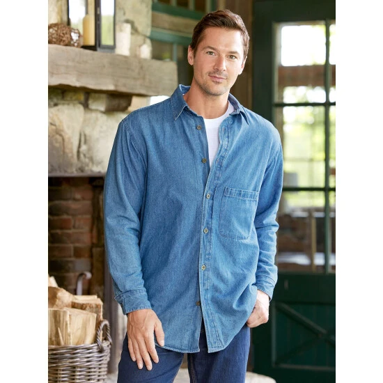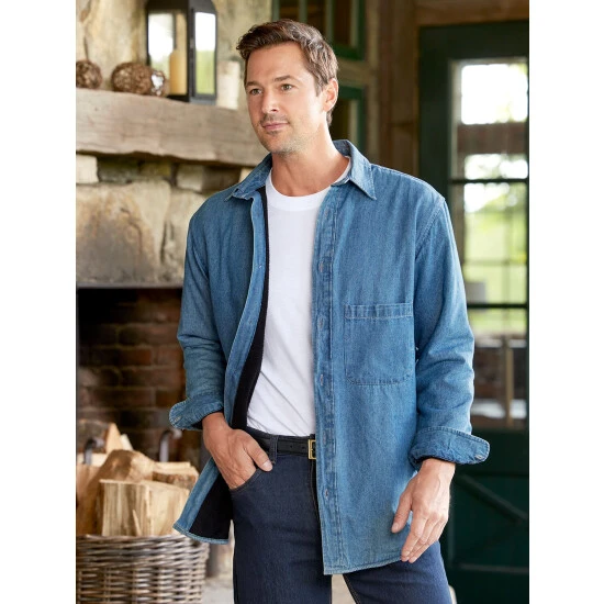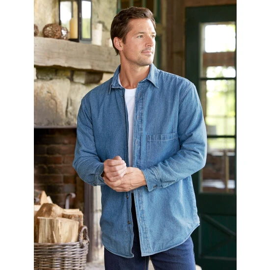 Instead of dressing in bulky layers, which makes it hard to move about, dress in the ultimate layer with this fleece-lined denim shirt. The outside is soft 100% cotton denim and the inside is lined with cold-blocking polyester fleece to keep you warm without restricting your movement. Perfect for when you’re working or playing outdoors. Features a chest pocket, shirttail hem, and metal buttons down the button front and at the cuffs.