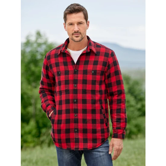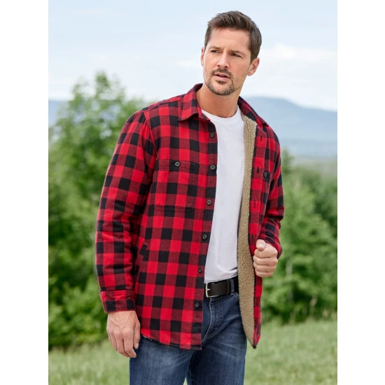 If your winters are as cold as ours, you’re going to want the double layers of warmth our sherpa-lined flannel shirt provides. It’s made with soft cotton flannel on the outside and insulating sherpa fleece on the inside and it has satin-lined sleeves to make putting it on and taking it off a breezeβno bunched up sleeves! Makes a great shirt jacket as well.